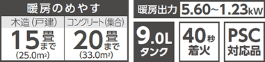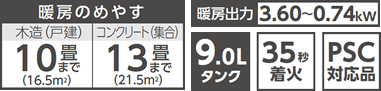 | 暖房のめやす | 木造(戸建) | 12畳(20.0m²)まで |