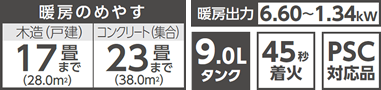 | 暖房のめやす | 木造(戸建) | 17畳(28.0m²)まで |